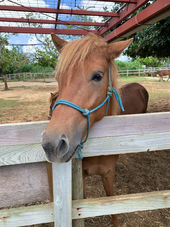 宮古馬。宮古島生まれで、もともとはさとうきび畑の収穫の手伝いをしていた農耕馬らしい。ちょっと小ぶりな馬。かわいいよな。