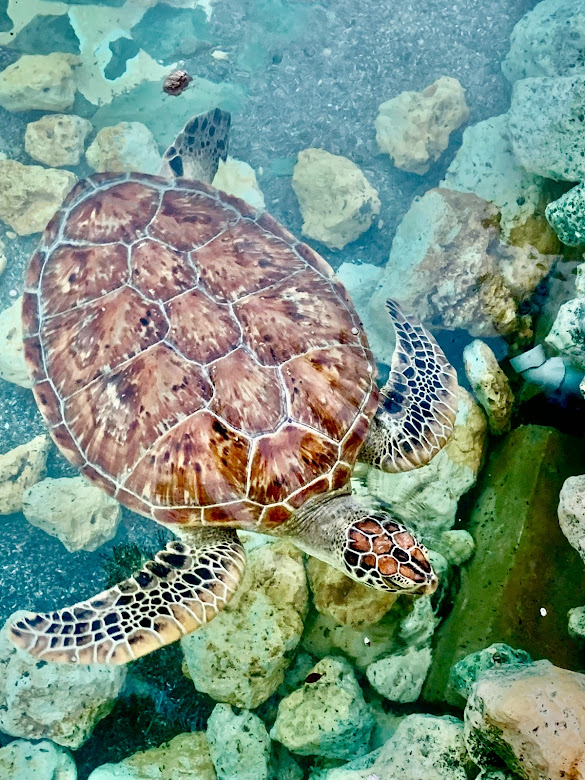 なんとそこには、アカウミガメが二匹。大きい!!!推定ベースだが、このカメは体重が100㎏近くあるらしい。なんとも愛嬌ある平泳ぎをしていたな。