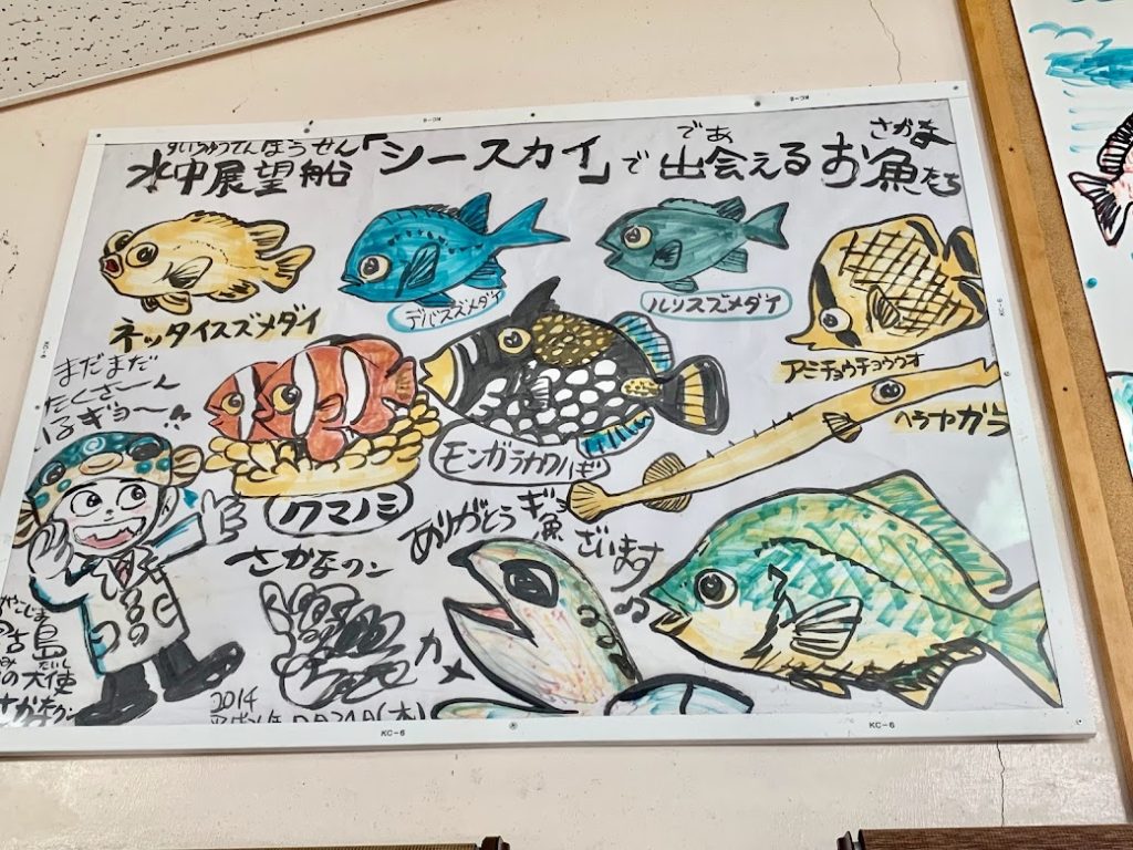 40分ちょっとの水中観光だったが、この舟は本当によかった。おススメ。宮古島に来たら、ぜひこの舟に乗ってみるといいと思う。普通のグラスボートは魚を上から見るケースが多いが、服を着たまま海中散歩と謳っている通り、この舟は魚を真横から見ることができる工夫がされている。なんでそれが可能なのか?詳しくはたびらいHPを見て欲しい。すぐに氷解すると思うけどな。