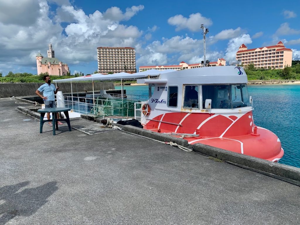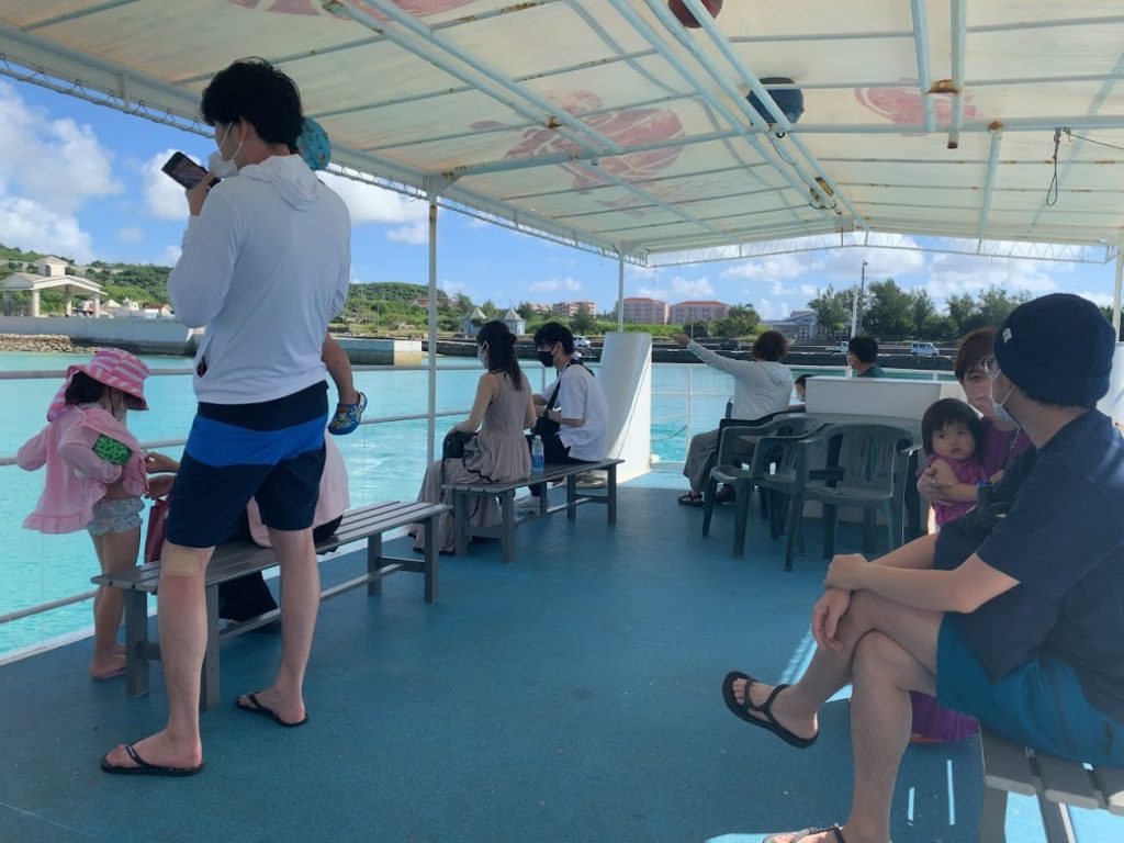 これがシースカイ博愛。さてさてこれに乗って、まずは船上から景色を楽しみながら、魚が多いサンゴ礁に移動する。