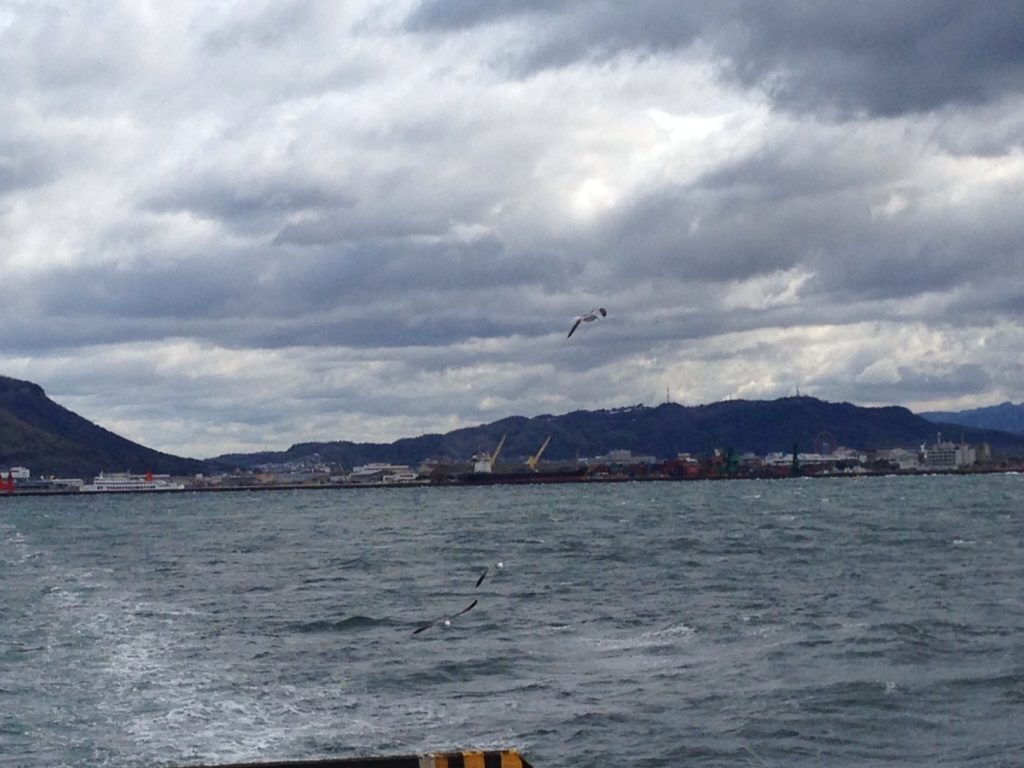 船の風呂から見る瀬戸内海、最高!温まるしな。単なる展望風呂ではない。船が動いて、海の景色がどんどん変わっていく。高松が遠ざかるのが分かる。潮の香りもする。カモメも飛んでくる!最高だって・・・