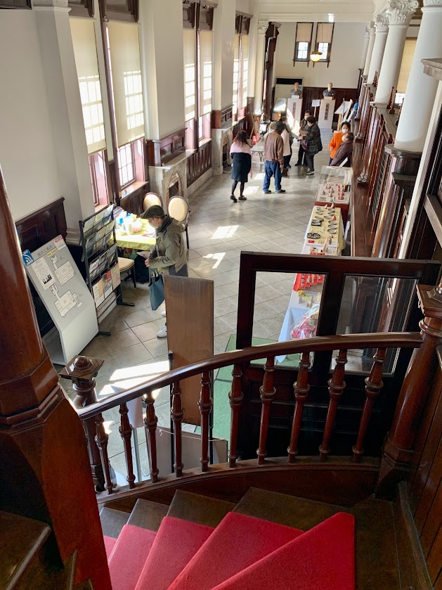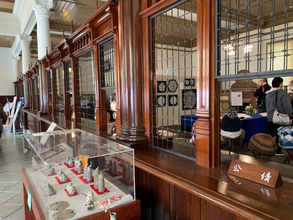 記念館の中。 二回は辰野金吾の展示がしてあるが。一階は、昔の唐津銀行の窓口が再現されている。 天井高でなかなかいい感じ。 なんだか三菱一号館のカフェ1984と共通するものがあるよな。 あそこも戦前の三菱銀行の建物・窓口を活かして作ってあるからな。 あと一階には女性のガイドさんが二人いて、この場所含め唐津のこと、レンタサイクルの行先等、いろいろと教えてくださいました。 親切で暖かかった。 唐津に来て、初めにここに寄って良かったなと思いましたね。