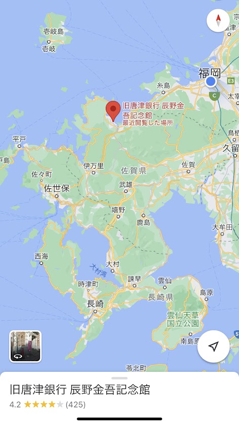 唐津は日本海に面しているので、綺麗な海が望めるかなと思ったが。 それに加えて、唐津を下調べしている段階で、意外な事実が。 東京駅や大阪・東京の日銀、 大阪の中央公会堂などをデザインした建築家、かの辰野金吾が唐津出身で、その記念館が唐津にあるらしい。まずはそこに行ってみようかな。そう思った。