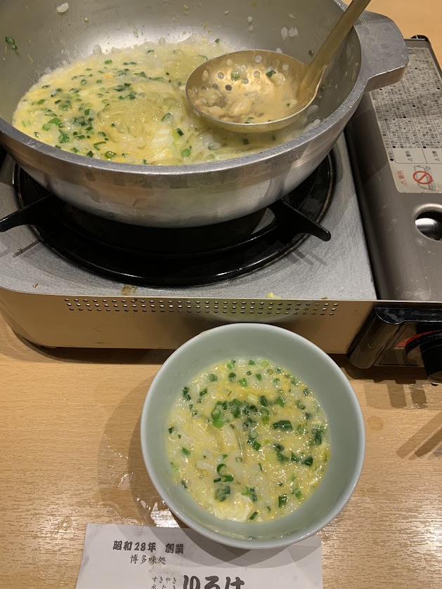 〆はチャンポン麺かおじやかの二択。今回はおじやにした。やはり、美味しな。