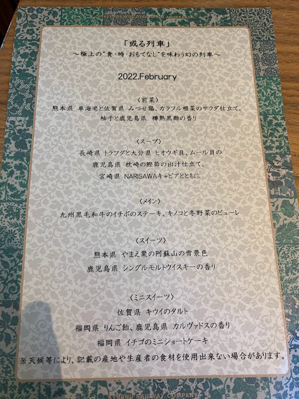 そもそもだ。久大本線は、博多から湯布院にかけては、後半は景色がとっても綺麗だけれども その間 博多から鳥栖・久留米と過ぎるあたりは、はっきり言って景色は盛り上がりに欠ける。はっきり言って大したことはない。そこの区間で美味しいフレンチをいただき、食べ終わった頃には、きれいな景色を堪能できるポイントが近づく。いい展開だよな。うまいこと考えたもんだ。JR九州さんさすがです。そう思った。