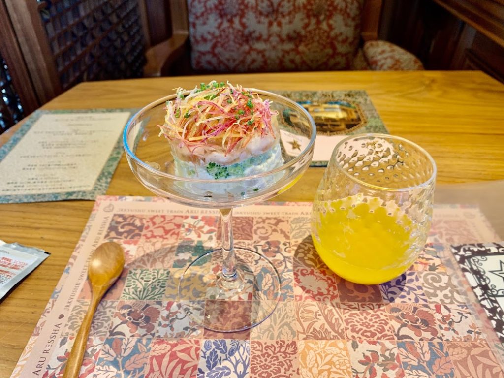 まずはノン・アルコールのスパークリングワインとオレンジジュースを。美味しな。