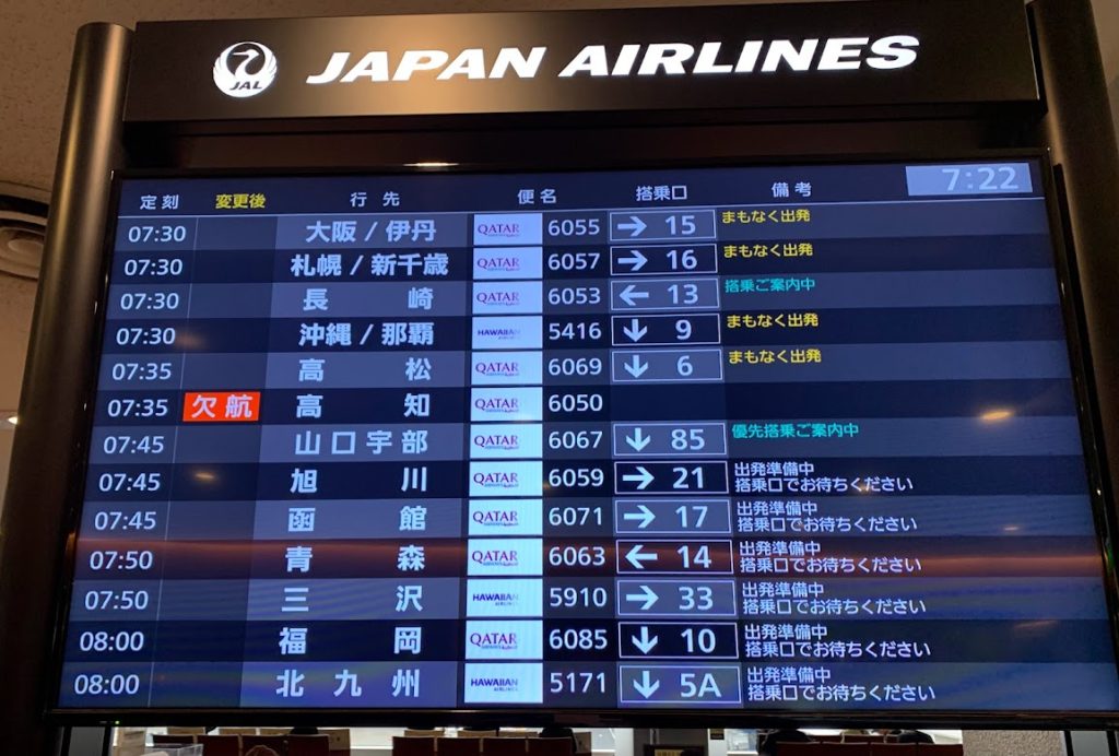 日曜の朝7時、羽田空港のさくらラウンジにて。 人の流れが少し戻ってきたように思うが・・・