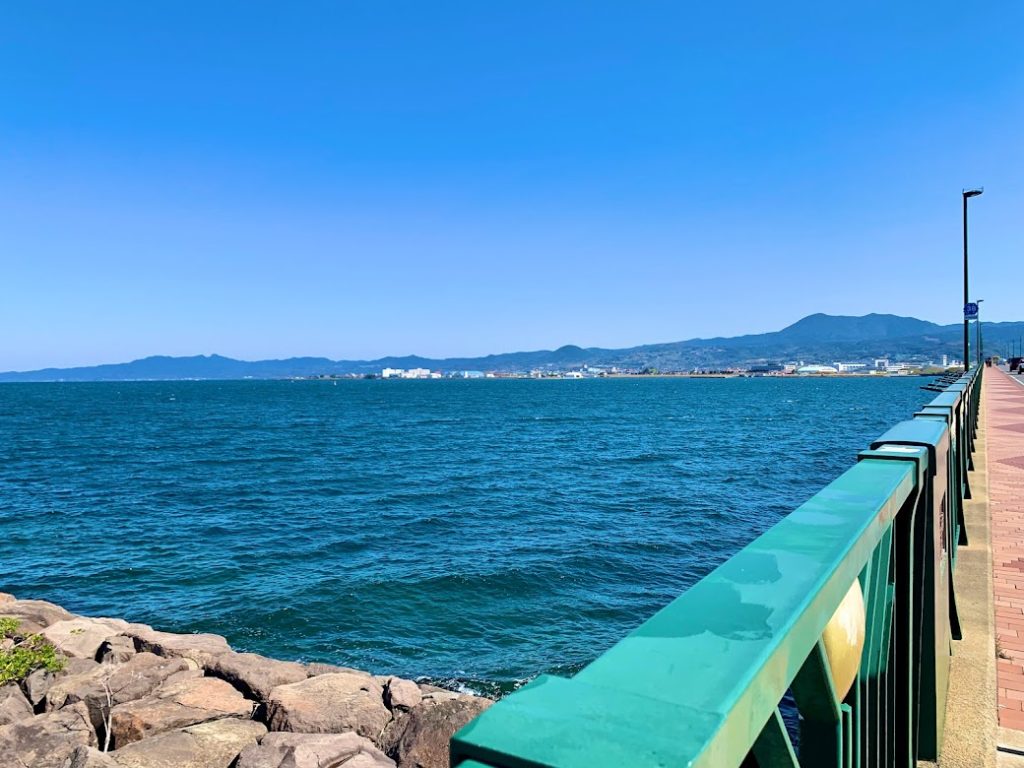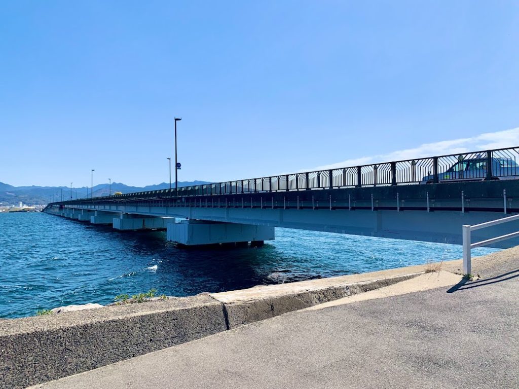 まずは大村湾、長崎空港と国道34号を結ぶ簑島(みのしま)大橋を渡って