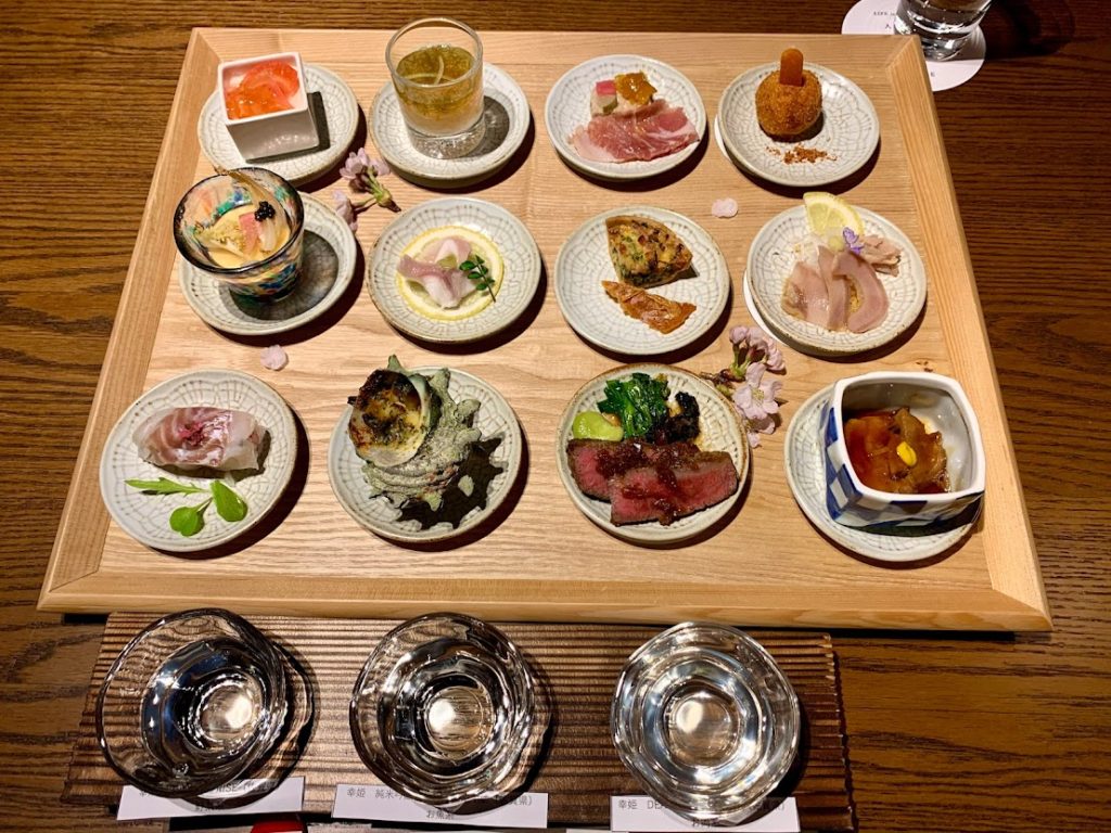 お通し12種類。3種類の日本酒とマリアージュさせていただいてねと。なるほどな…美味し。料理、一つ一つの作り込みがすごい事は確かだ。