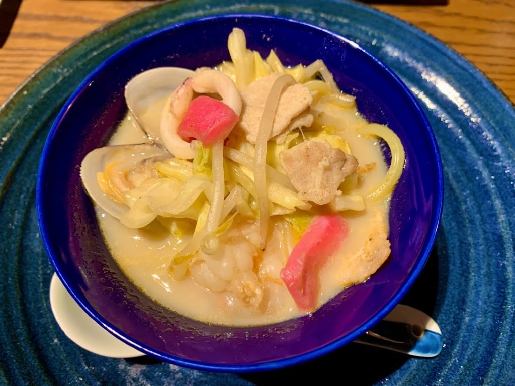 シェフ特製ブイヤベース濃厚ちゃんぽん。さっき食べたブイヤベースの出汁を元に、長崎ちゃんぽんの出汁もミックスし、作り上げた逸品と。そうか…確かに美味しな。