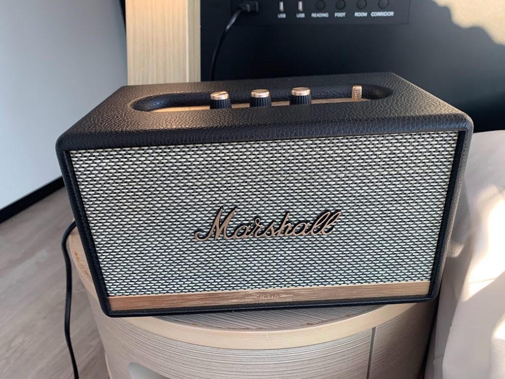 アロフト大阪堂島は、音楽ある人生がコンセプトらしい。部屋にはこんな、ハードロック向けのギターアンプで有名なMarshallのスピーカーがあった。素晴らしい重低音。これは買って、家に置くことにしようと思った。
