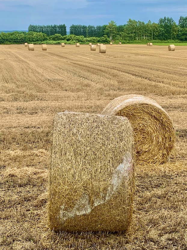 宿の道中、干し草のロールを発見。これは牛のえさになるんだよな。出来立てみたいだ。普通はビニール袋に覆われる。白と黒の、キャンディみたいになるんだよな。