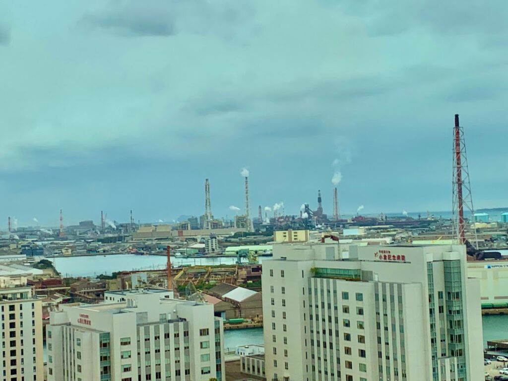 ここには何度か来ているが、この眺めは初めて。ホテルの部屋から、旧官営八幡製鉄、現日本製鉄九州製鉄所が見えるな。ちょっと感動もんだ。