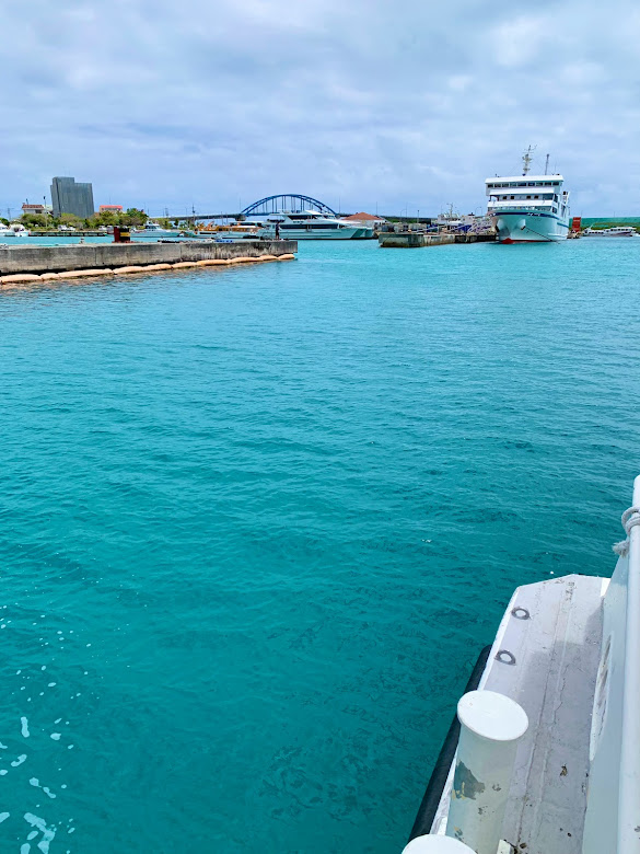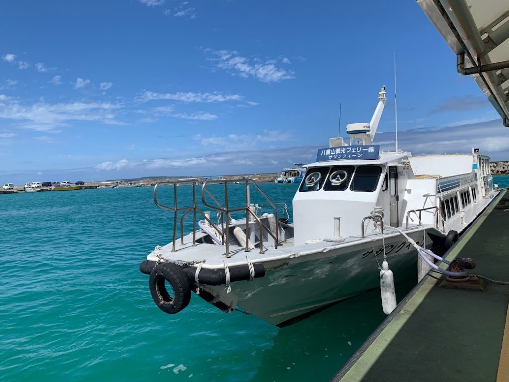 石垣港。ここから西表島の上原港に向かう。港ですらマリンブルーの海。きれいだよな。