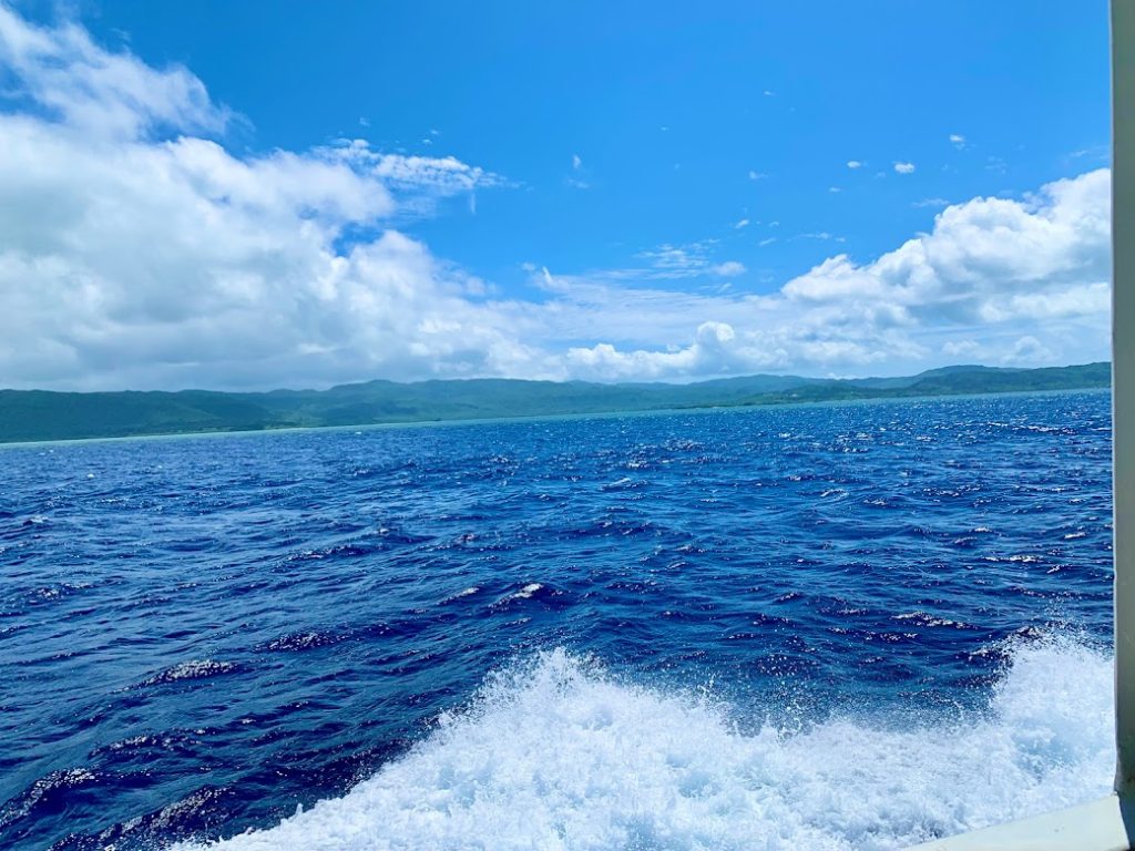 こんなきれいなこの海が望めたから。石垣港での天気は曇りだったが、西表島の上原港に近づくにつれ、晴れてきた。う~む、このお天気のダイナミックな変化が、実に嬉しかったけどな。