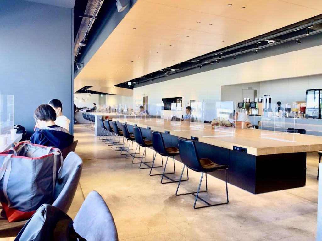 羽田空港パワーラウンジにて。ここはJALのさくらラウンジ比較で、飛行機が近くに見えるのがいいな。すでに「まんぼう」は解除されているが、出発日が日曜の早朝のせいか、ラウンジは見ての通り空いていた。この点、日曜出発の出張旅はいいよな。