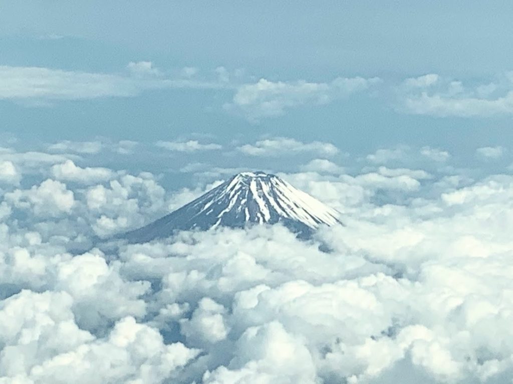しばらくすると富士が見えてきた。頭を雲の上に出し・・・という、かの曲の感じ。姿がいいな。