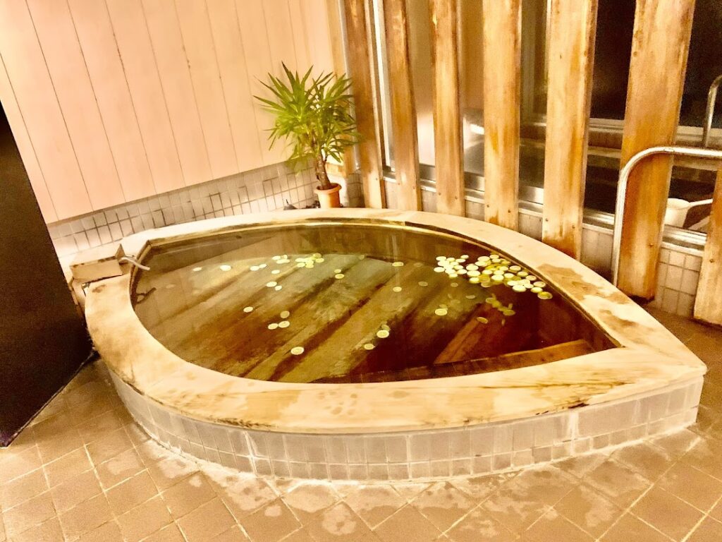 朝風呂へ。レモンが浮かぶレモン風呂と、温泉風なお風呂。湯舟で浮かんでいるレモンを手に取り絞ってみると、さわやかな香りが漂うな。温泉ではないが、この感じはなかなかにいいよな。