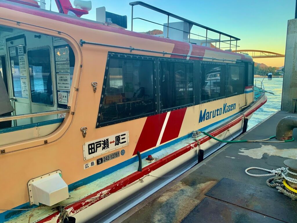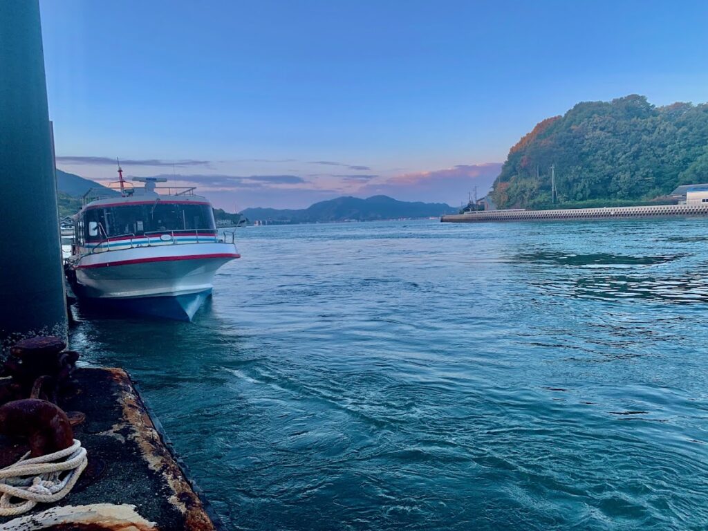瀬戸田港から、三原行きの船が出るところ。海を見ると、潮の流れがあることがよくわかる。きれいだよな。