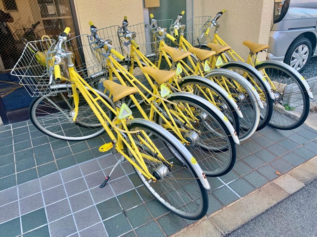宿に戻る。今回は借りるチャンスがなかったが、レンタサイクルもまたレモン色なんだな。
