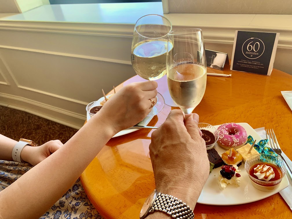 これは今年の6月にこのホテルを訪れた折、たまたまアフタヌーンティーをご一緒してくれた女性がいたときの図。今回はそういう事はなくて、暇にしてた。17時半からのカクテルタイムに1人でワインとアテをいただくことにする。次回に続く。
