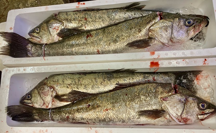 スズキ。大きい!体長は50㎝以上ある。三重県の尾鷲で採れたものと。どうやって食べると美味いんだろうな。