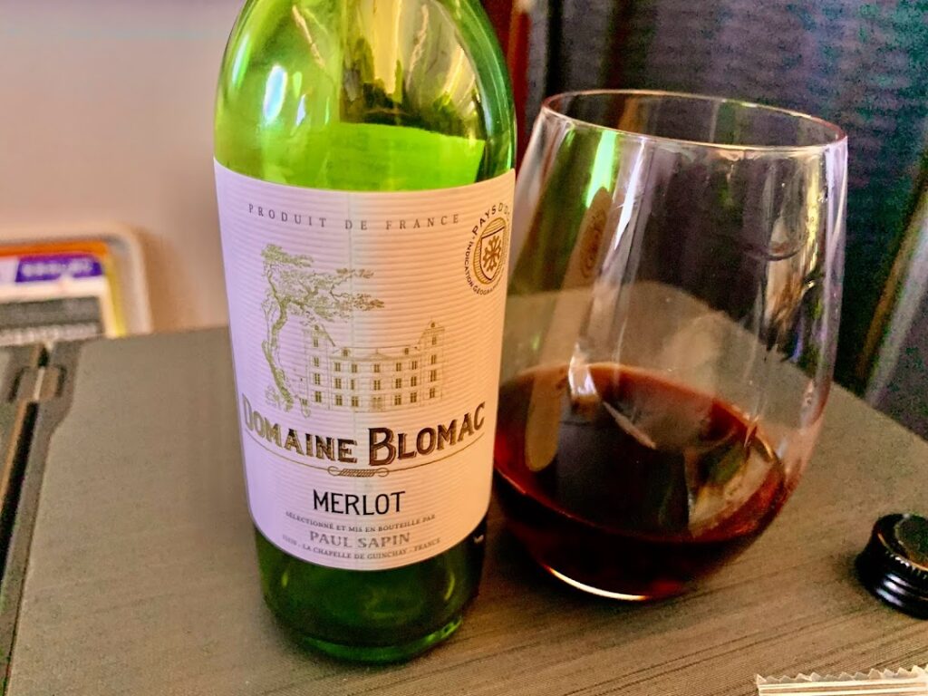 赤ワインもいただく。こちらはミニボトルで。フランスのメルローの赤。美味しな。