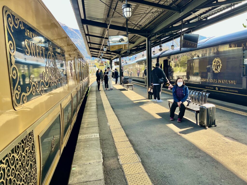 ほぼ同時に、特急「ゆふ」の新しい車両が。この車両、長崎・熊本・鹿児島に出張③肥薩線特急「くまがわ」と「いさぶろう・しんぺい」と似てるよな。