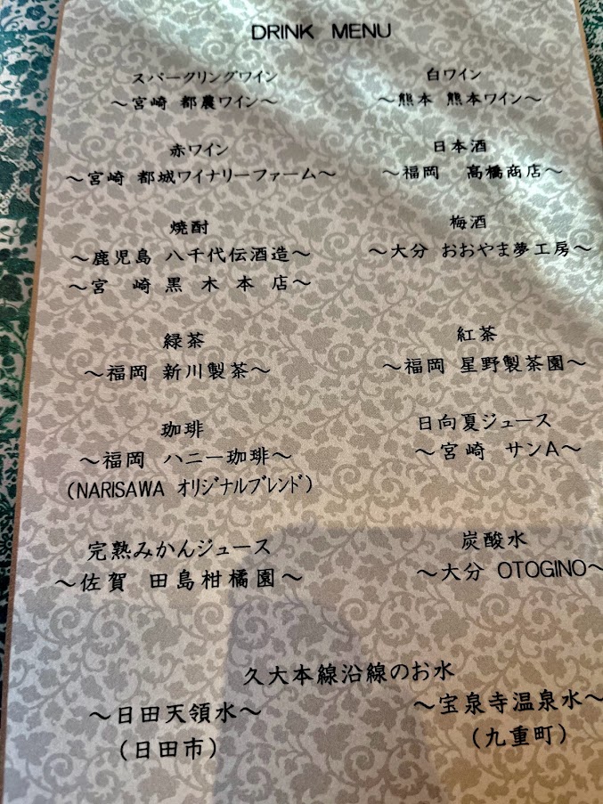 食事と飲み物のメニュー。ちなみに飲み物は飲み放題と。嬉しいよな。