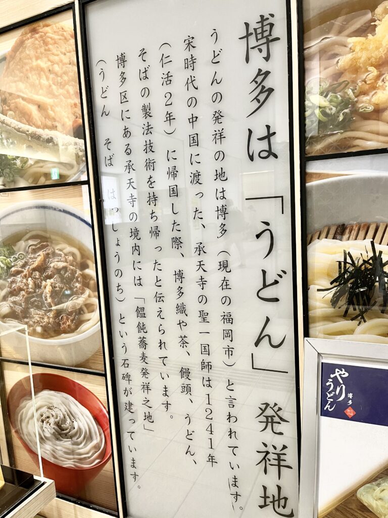 駅の近くにうどん屋さんが。そうか。うどんの発祥の地は博多なんだ。これは知らなかった。なるほどな・・・