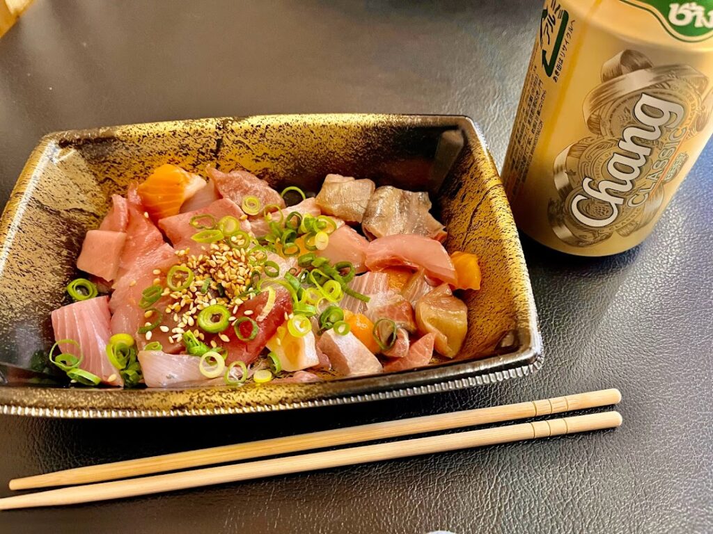 驚いた!りゅうきゅうが売ってる。早速買って、なぜかタイのビールとともに近くのベンチに座り、いただくことに。美味い!う~む、この旅の初日に行ったお店がお休みだったので、挫折感を実に感じていたが。このタイミングでりゅうきゅうを、こんなに安い価格で食べることができたことは、本当にうれしかった・・・