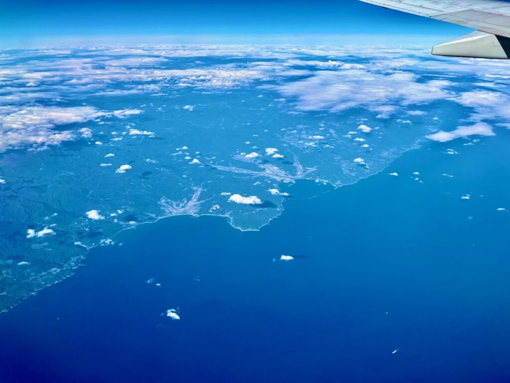 今回は車窓からきれいに景色が見えた。上の写真は猪苗代湖、下は太平洋から久慈のあたりを望む。