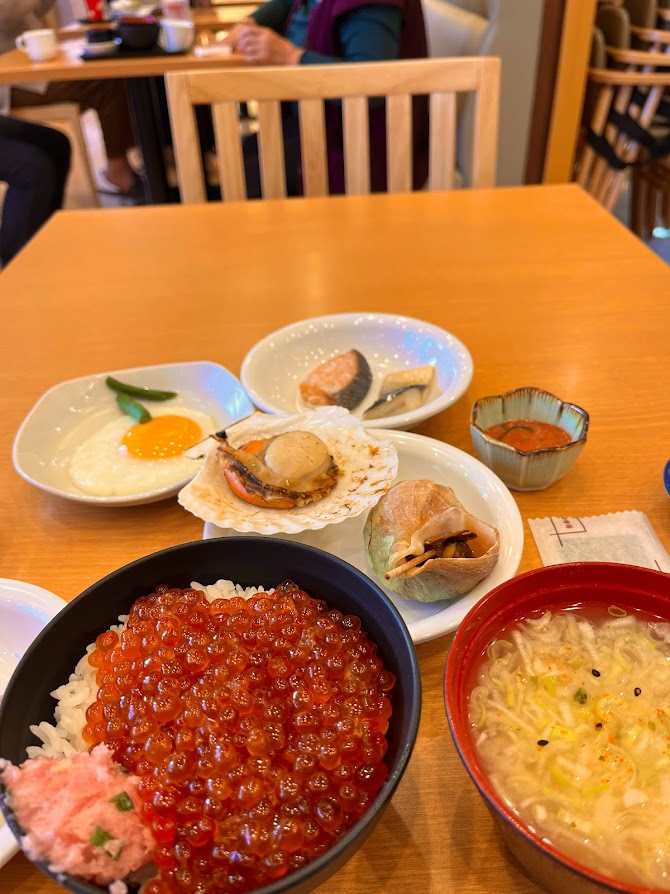 ホタテやつぶ貝など。道東の海の幸だな。