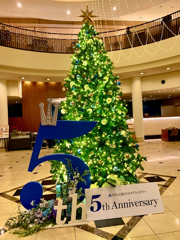 朝餉前の散歩に出かけよう・・・と、このホテル、開業5周年なんだ。その前にはここは、ANAホテル、そして地元資本の時期もあった。私はANAホテル以降は実際に泊まっているんだが。Wikiによれば、このホテルは件のANAホテルの前は、1998年に第一ホテル大分オアシスタワーとして開業したみたいだ。ヒストリーで言えば、それ以降、経営母体が4つに渡るんだな。いろんな経緯があるが、ホテル日航大分オアシスタワーとして開業開業5周年は、喜ばしいよな。それは確かだ…