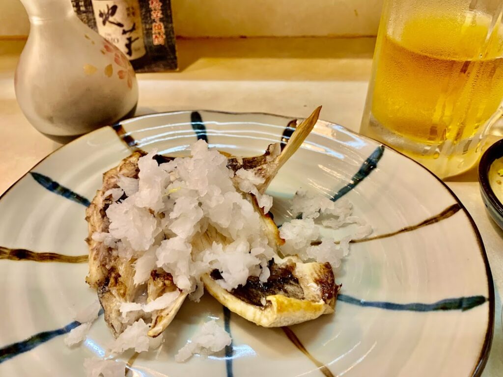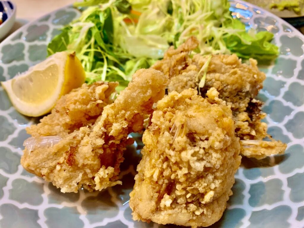 あんこうのから揚げ。食べてみると鶏のから揚げのようだが、あんこうをイメージさせるヌルっとした部分が存在し、その周りに旨味が乗っている。ここまですべて、ビールにとても良く合う逸品のオンパレードだ。