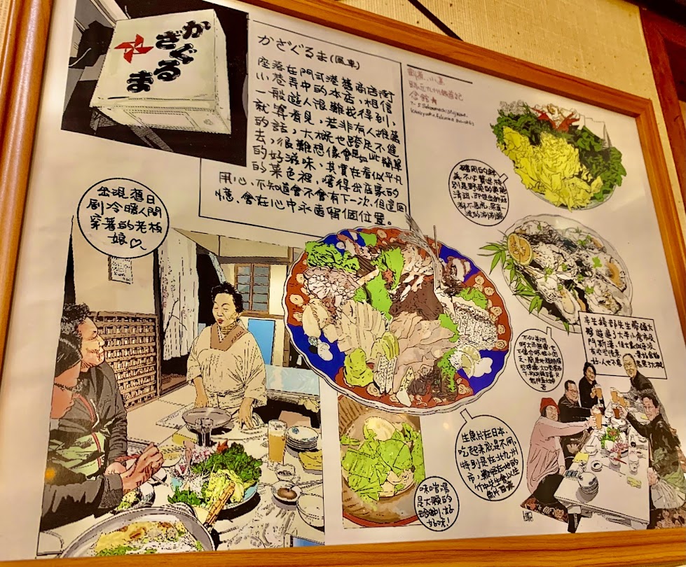 お店の絵が飾られていたが、よく見ると、日本語ではない。中国語。聞けばここを訪れた台湾人がプレゼントしてくれたらしい。まあ上手に描かれてるし、これを書いてくれるというのは、ここの女将さんの人徳なんだろうな。