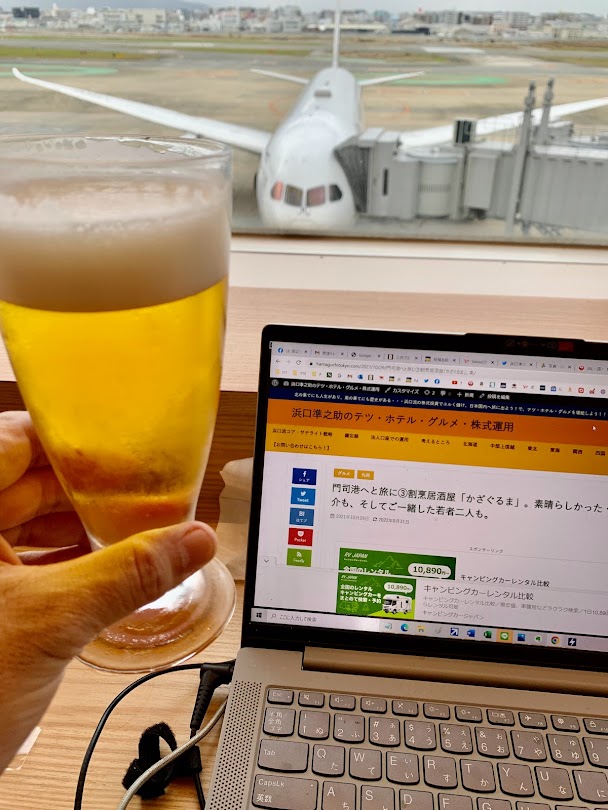 福岡空港に到着。JALのさくらラウンジで、羽田行きを待つ。旅行支援のチケットが3,000円分あるから、これでお土産も買い込んだ。することもないので、ビールを飲みながら、ブログを時間まで書く。こんな時間もいいよな。