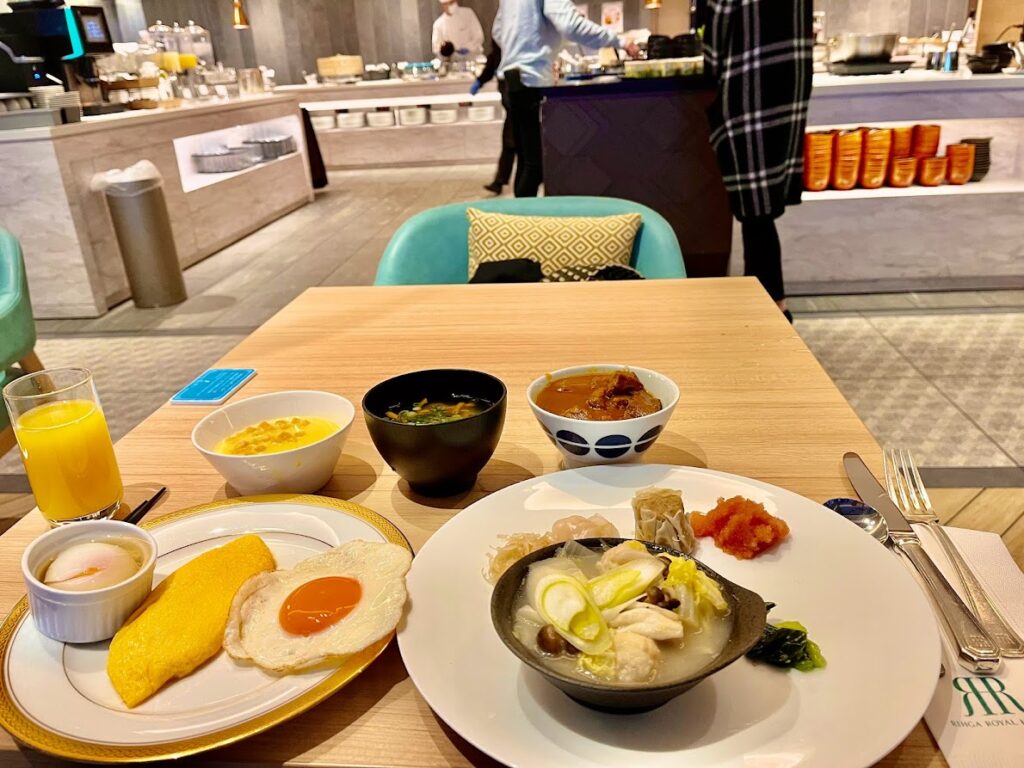 リーガロイヤルホテル小倉、レストラン「リトアス」のビュフェ朝餉。美味し。特に右手前の、鶏団子と野菜の汁が好きなんだよな。