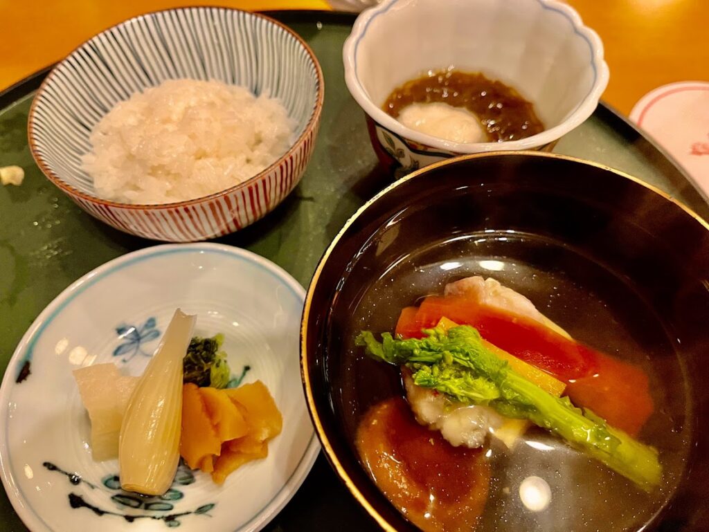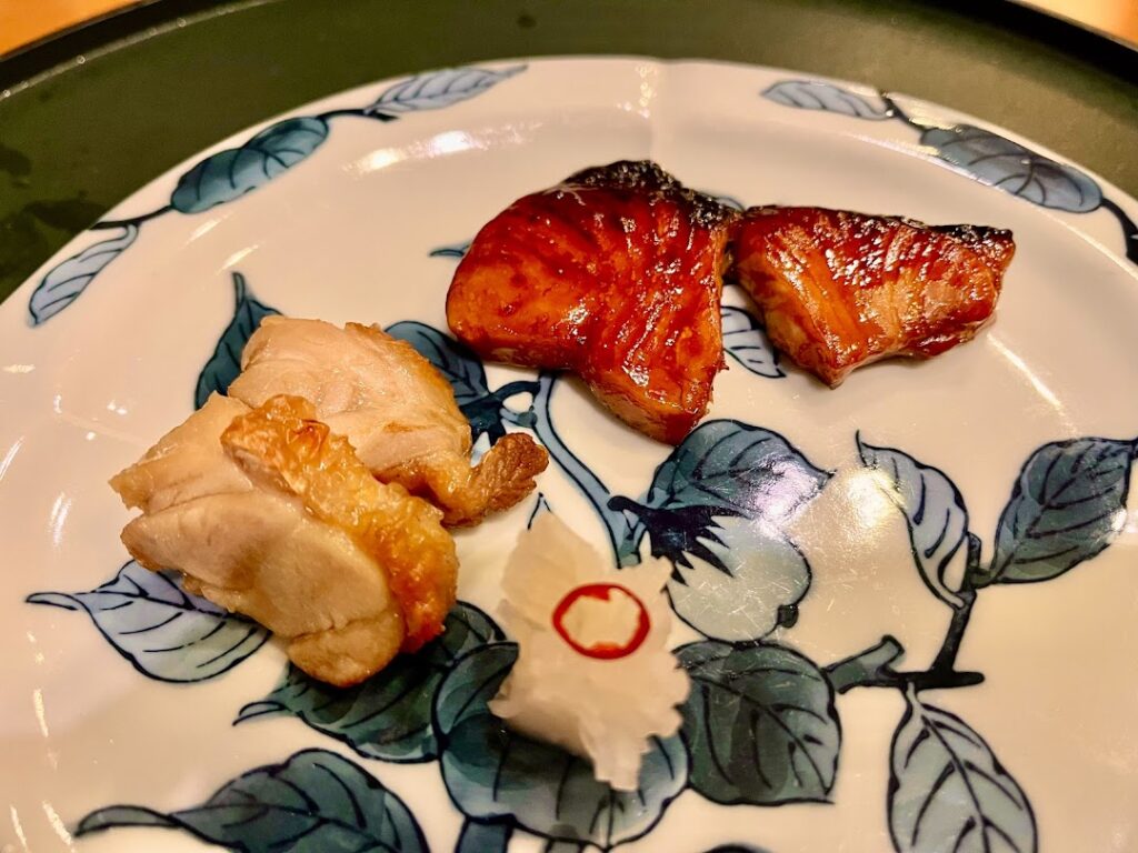 続いては焼き物。鹿児島の地鶏と、カンパチの味噌漬け焼き。美味しだった。