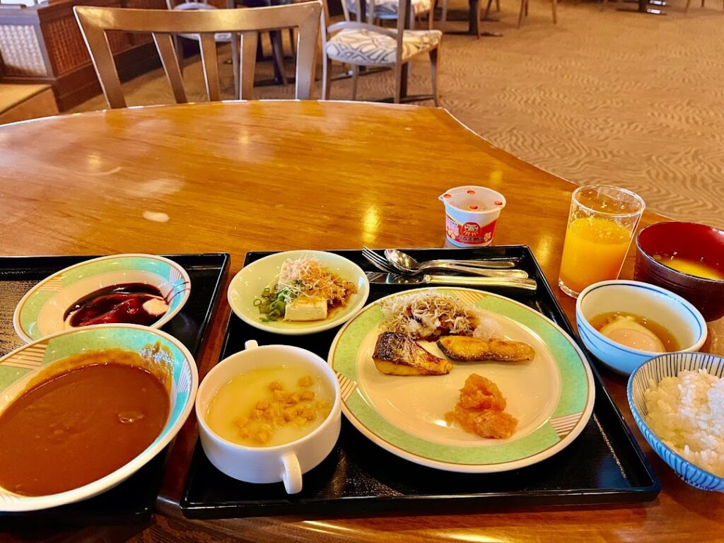 ホテルのビュフェ朝食。シンプルではあるが必要十分。これでいいと思う。