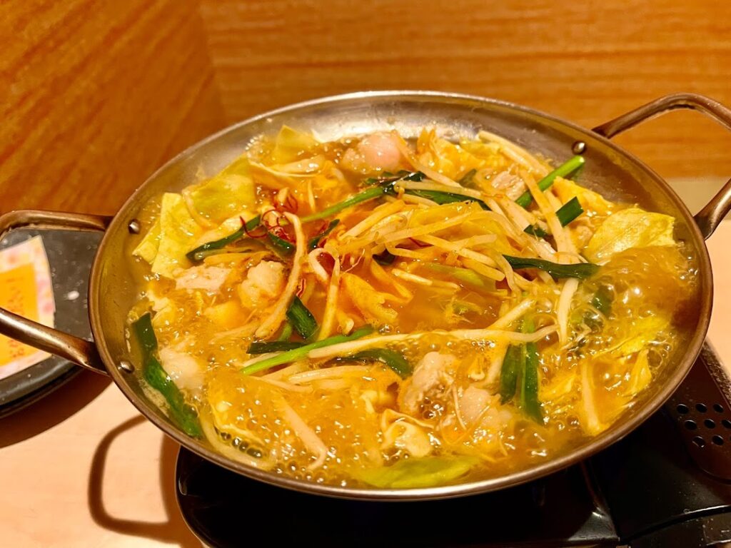 もつ鍋。頼み込んで、一人前を作ってもらった。お味は、写真からイメージできる、そのまんまの味。やはり、ビールと良く合うって。