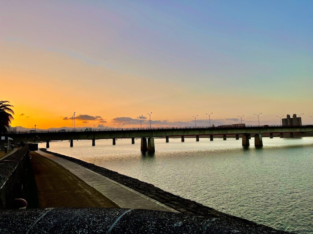 大淀川のあたりを散策。夕焼けだ。そして・・・