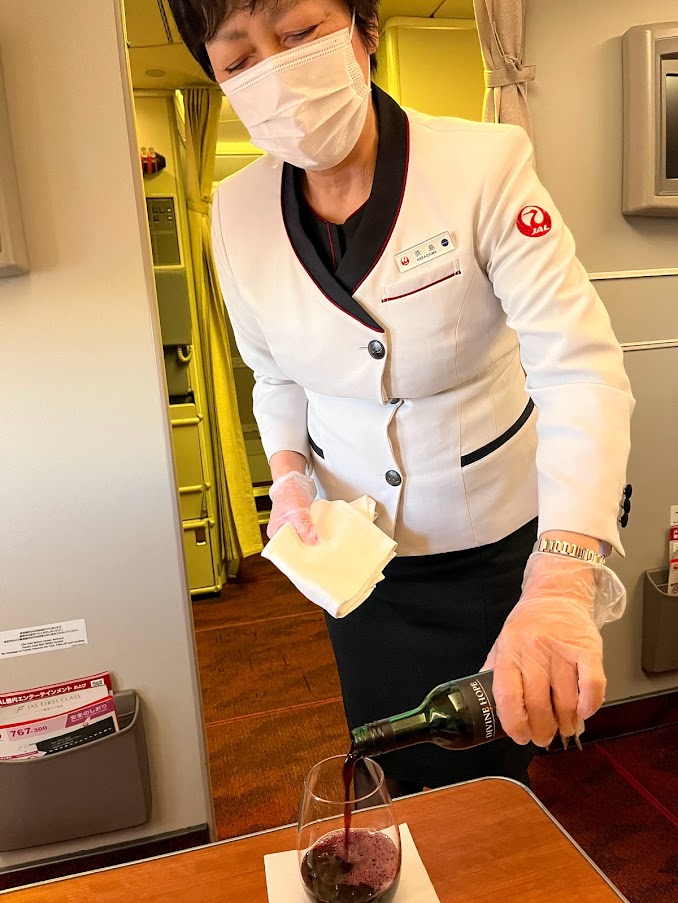 シャンパンのお代わりをいただき、続いて白・赤とワインをいただく。たまらないな。惜しむらくはCAさんが、マスクをしていなければ・・・まあそれは、いかんともしがたいよな。