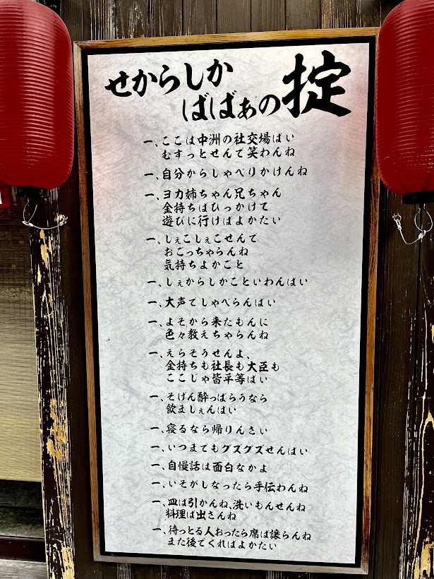 博多ラーメンの一蘭は日本全国にあるが、ここに本社があった。この本社写真の左に掲げられている「せかしらかばばあの掟」は、インパクトあるよな。
