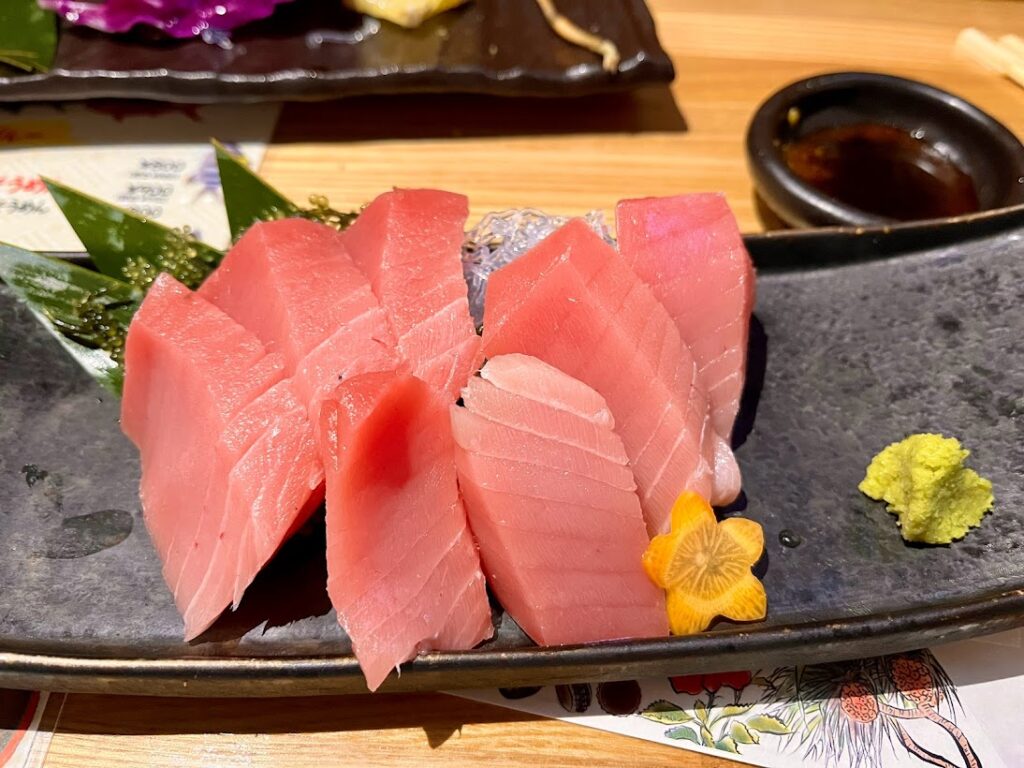 本マグロの中トロ。前のはもちろんだけど、東京で食べるお刺身の3倍ある大きさが。どうなってるんだ・・・これで1500円は割安だよな。