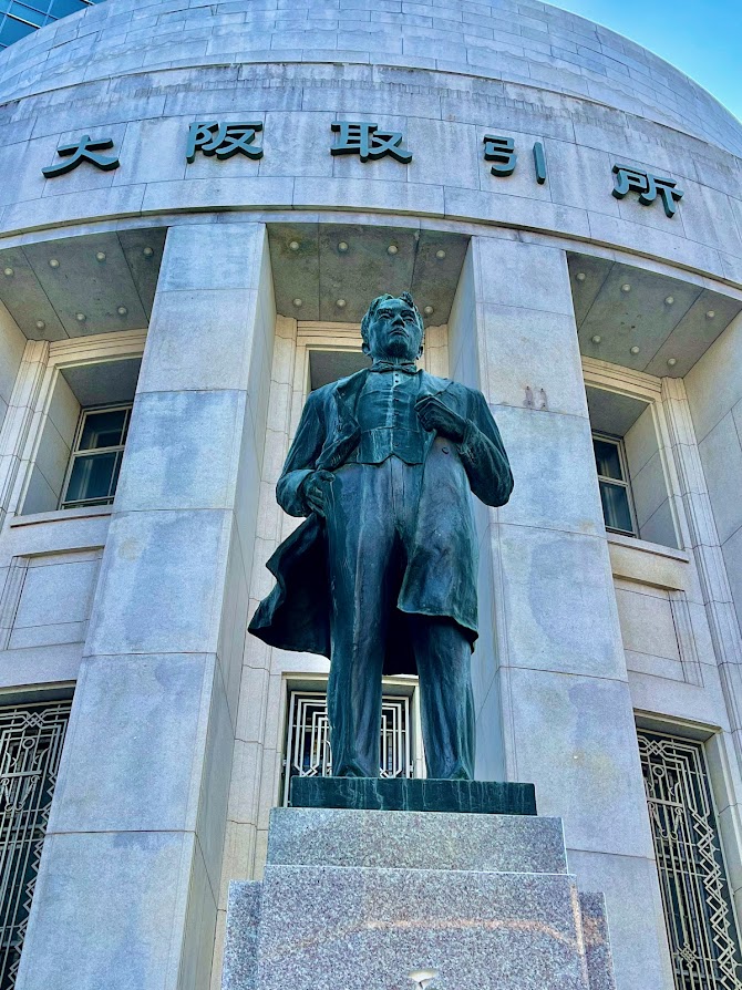 大阪取引の前の五大友厚像、いつ見てもかっこいいよな。