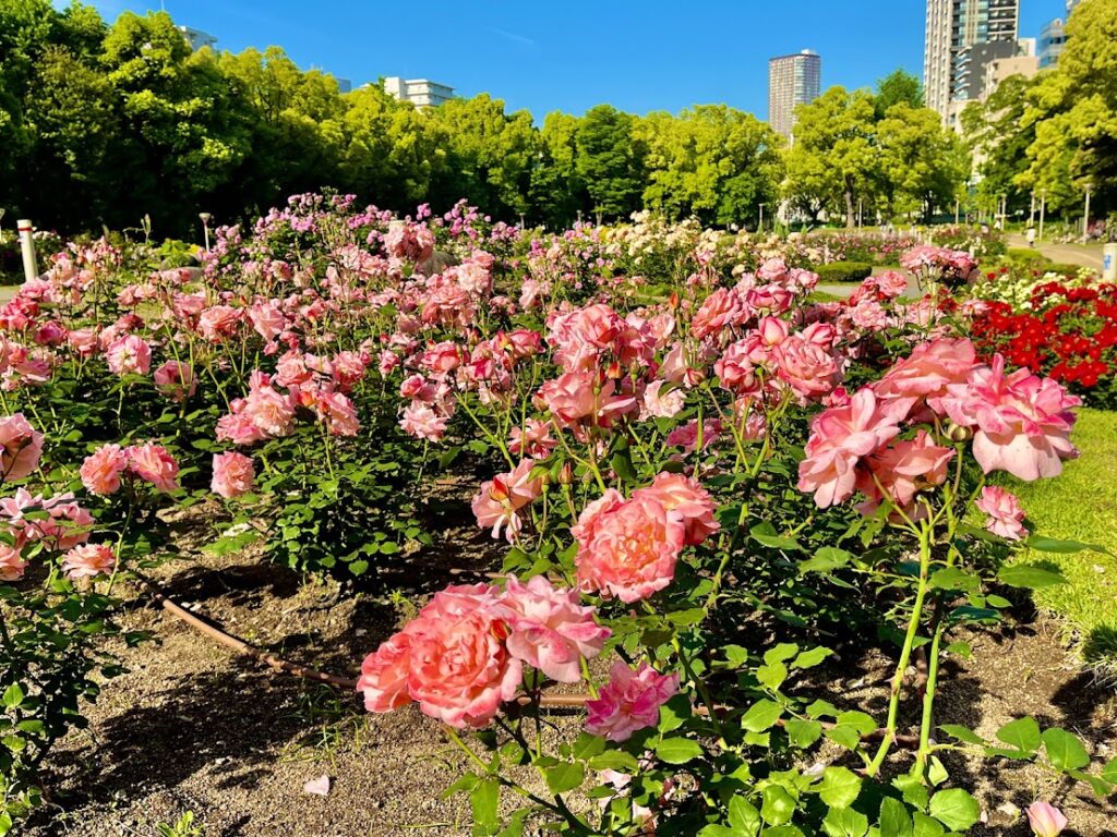 うつぼ公園のバラのトンネル。この日はまだ、バラはまばらだった。