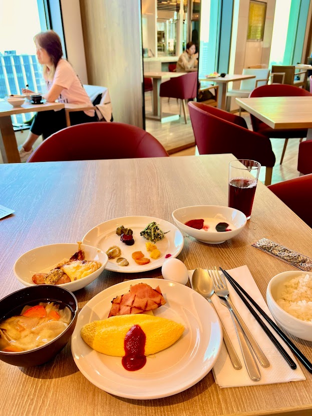 ビュフェ朝餉。やはりメインは、オムレツ。でも最近は少食になり、あまり食べることができなくなったな。