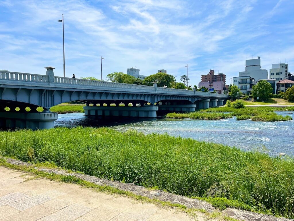 京阪電車出町柳駅に到着。出るとすぐに、鴨川が、そして賀茂大橋が。今日は天気がいいな。
