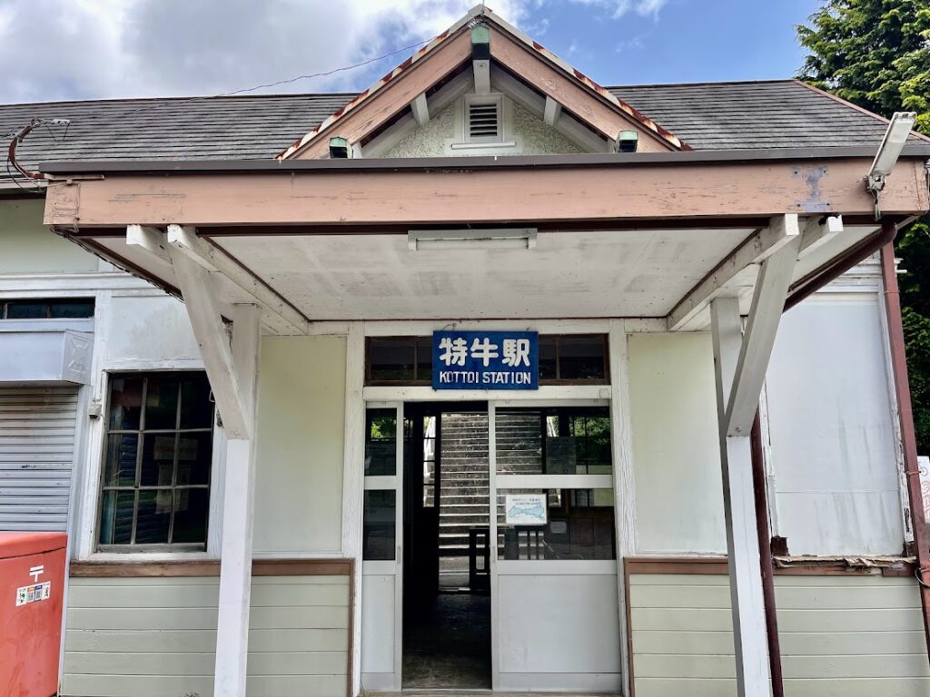 この駅、わかりますか?山陰本線の特牛(こっとい)駅、テツの間でも、難読駅として有名ですね。そして驚いたことに、到着して1分後に、気動車がやってきた。